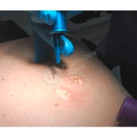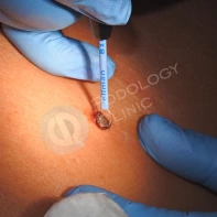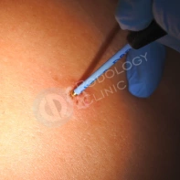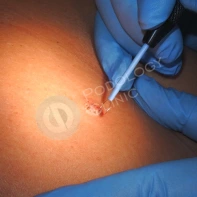 - Электрокоагуляция. Термическое воздействие на узелки и пятна с использованием высокочастотного тока.