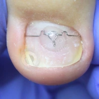Онихокриптоз, или вросший ноготь, – одно из самых распространенных заболеваний ногтей, чаще всего затрагивающее большие пальцы ног и вызывающее сильную боль, отек и воспаление. Если степень врастания небольшая, используются консервативные методы коррекции, не требующие операционного вмешательства. Лечение проводится специалистом-подологом при помощи различных пластинчатых и проволочных конструкций и протекторов, которые постепенно разгибают деформированный ноготь и придают ему правильную форму.