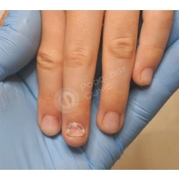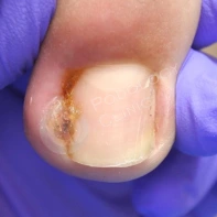 Вросший ноготь (или онихокриптоз) – это болезнь, при которой ногтевая пластинка врастает в боковую часть кожного валика. Чаще всего это явление возникает на большом пальце стопы. В таком случае возникает боль, отек валика, гиперемия и не редко серозно-гнойное отделяемое. В таком случае, чаще всего, проводится краевая резекция врастающей части ногтевой пластины.