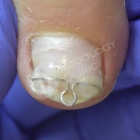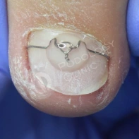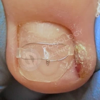 И не всегда пациент с описанной клиникой нуждается исключительно в хирургическом лечении. Во время консультации пациенту рассказывают и описывают вариант подологического лечения, его преимущества, сроки лечения и стоимость. При интенсивном врастании убирается врастающий сегмент ногтя, далее проводится санация раны, назначаются перевязки для лечения воспалительного процесса. После снятия обострения подолог устанавливает коррекционные системы при необходимости.