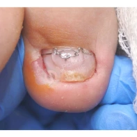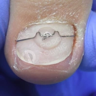 В связи с постоянной травматизацией ногтевых пластин во время хирургического удаления, возможно формирование деформированных ногтей. Ногтевые пластины формируются суженными за счет глубоко посаженных краев в боковые пазухи кожных валиков. Для этого существуют коррекционные системы (скобы, пластины), которые принудительно расширят ногтевые пластины и зададут правильный вектор для роста ногтя.